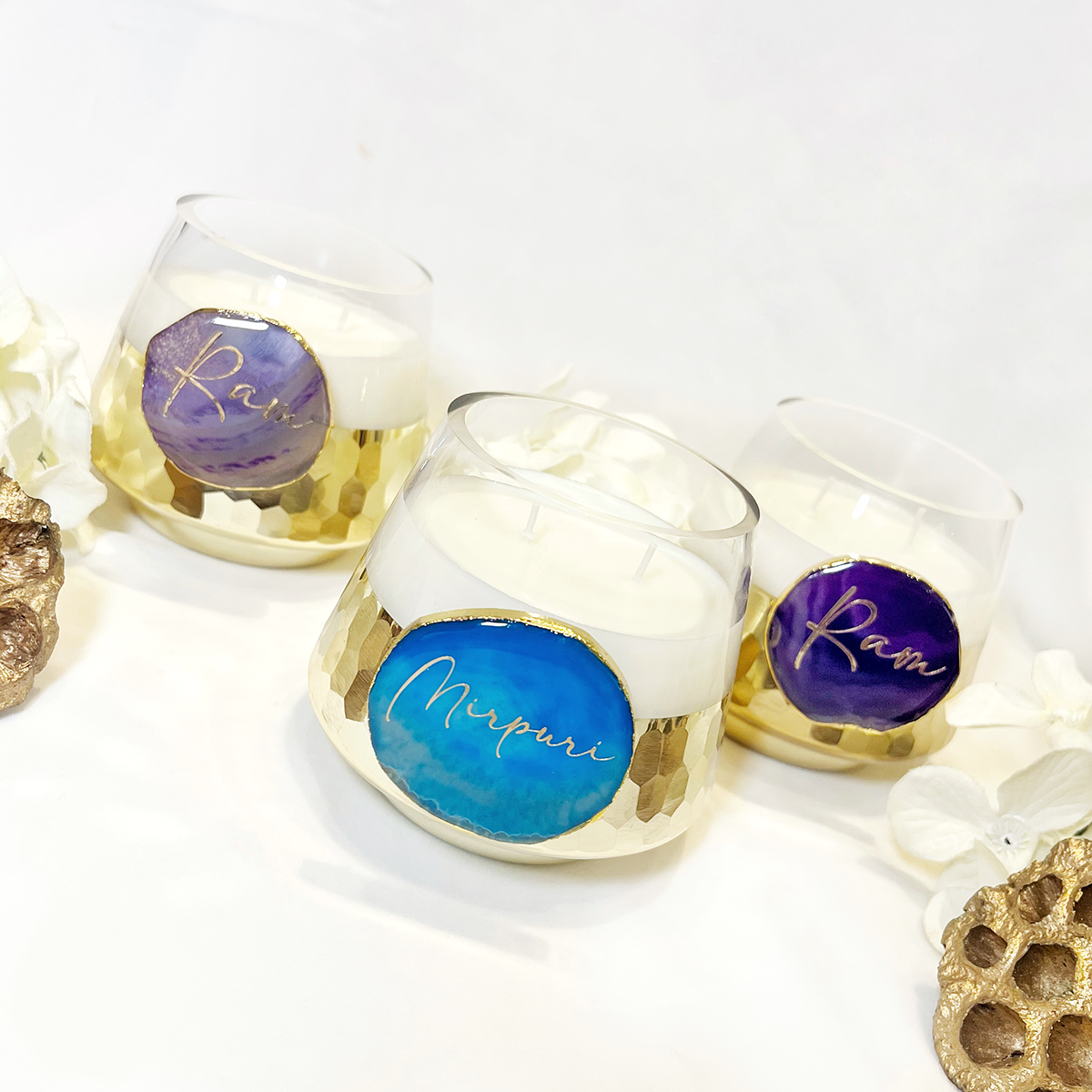 Elevate your home decor with our stunning luminous Agate Candle Collection. Each candle is a beautiful fusion of natural elegance and personalization, featuring a vibrant agate stone label that adds a unique touch to your space. Perfect for creating a cozy atmosphere, these candles are not just lighting; they are a statement piece.