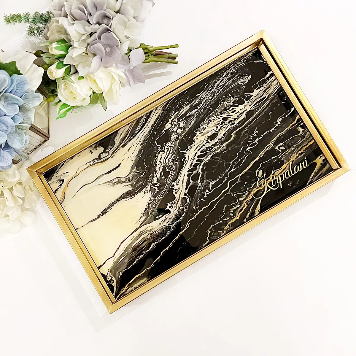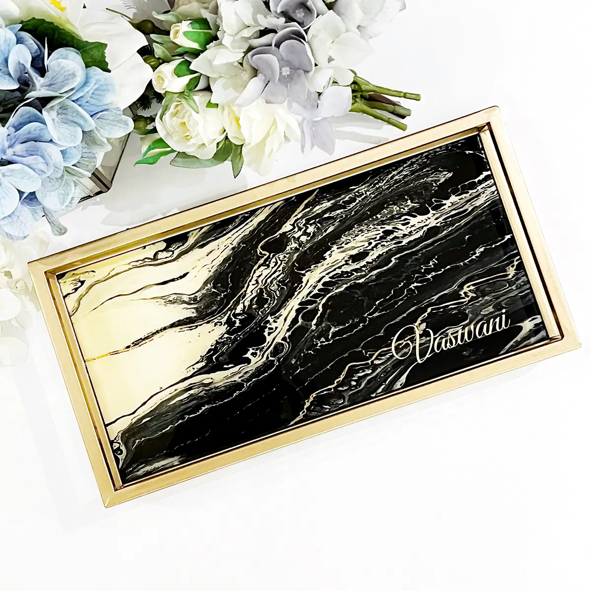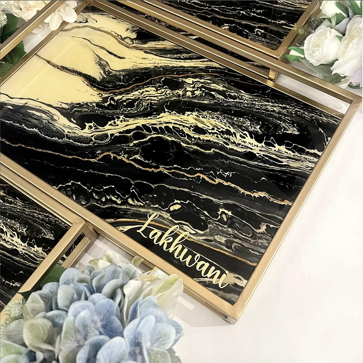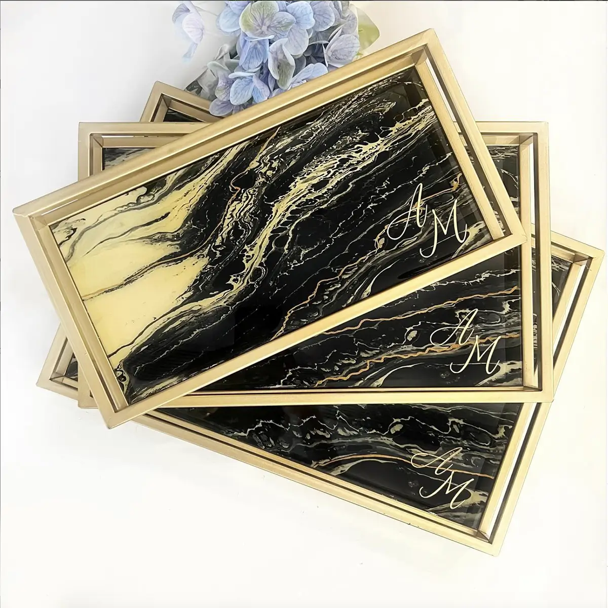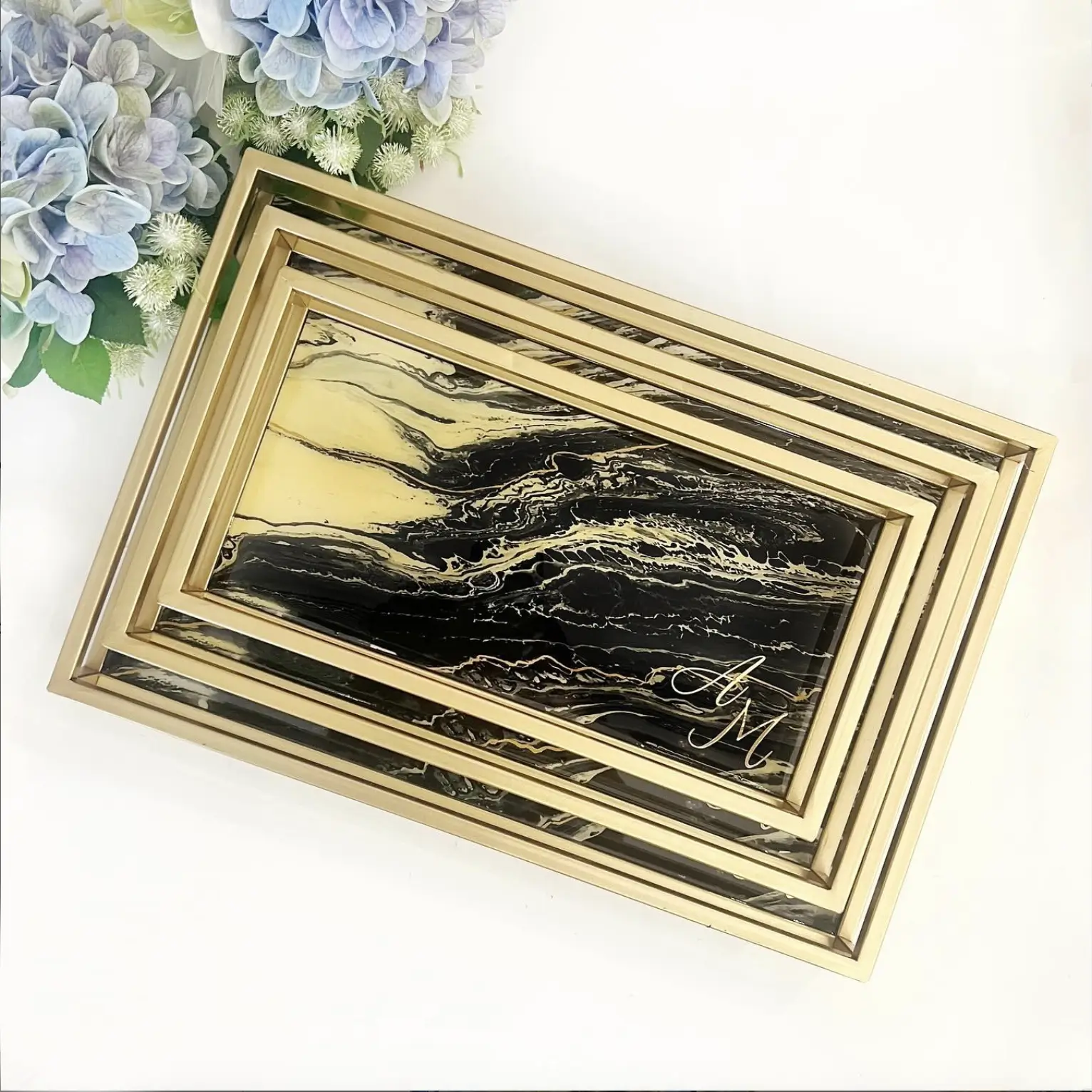Transform your home with this nesting tray set, designed for both elegance and functionality. Each tray features a stunning black and gold marbled design, making them a stylish addition to any décor.
