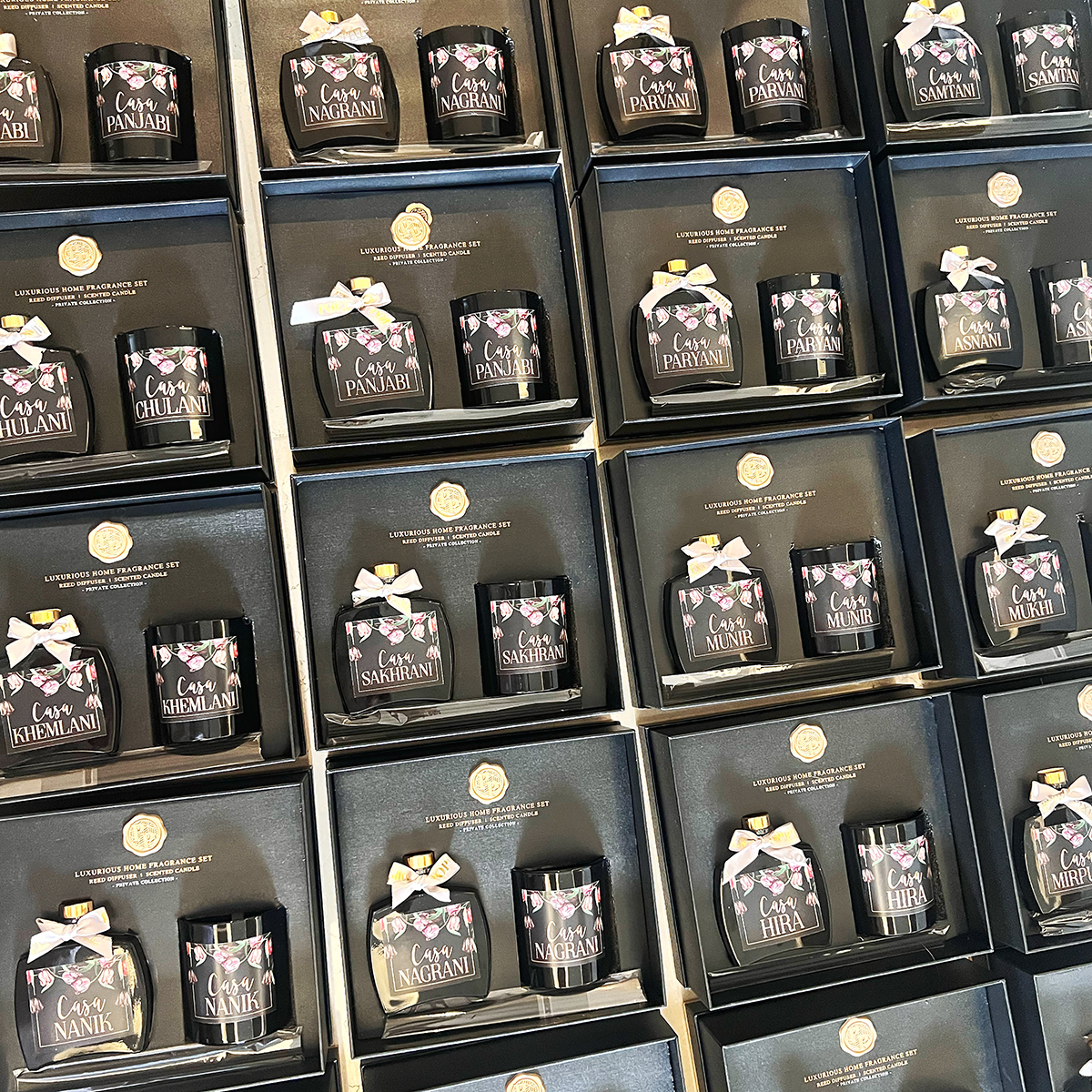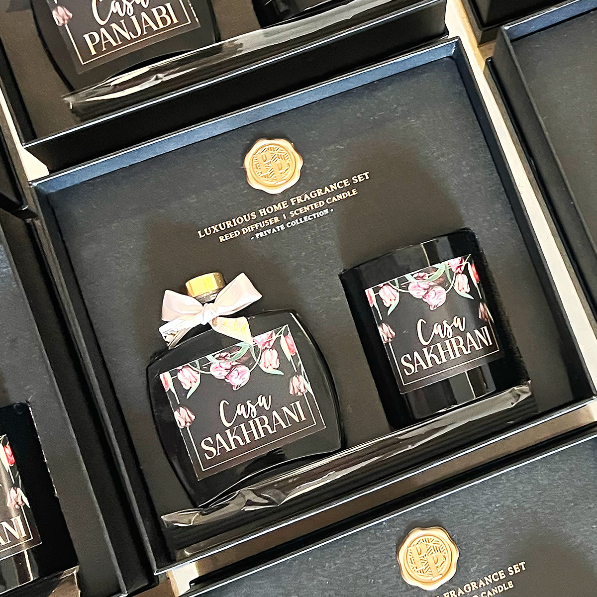 Elevate your home ambiance with our Candle & Diffuser Gift Set, a perfect blend of elegance and personalization. Each set features a beautifully crafted scented candle and a reed diffuser, both adorned with your family name and enchanting floral patterns, making them a unique addition to any space. Indulge in the luxurious scents and captivating designs of our gift set, perfect for any occasion or simply to treat yourself to transforming your space into a fragrant sanctuary.