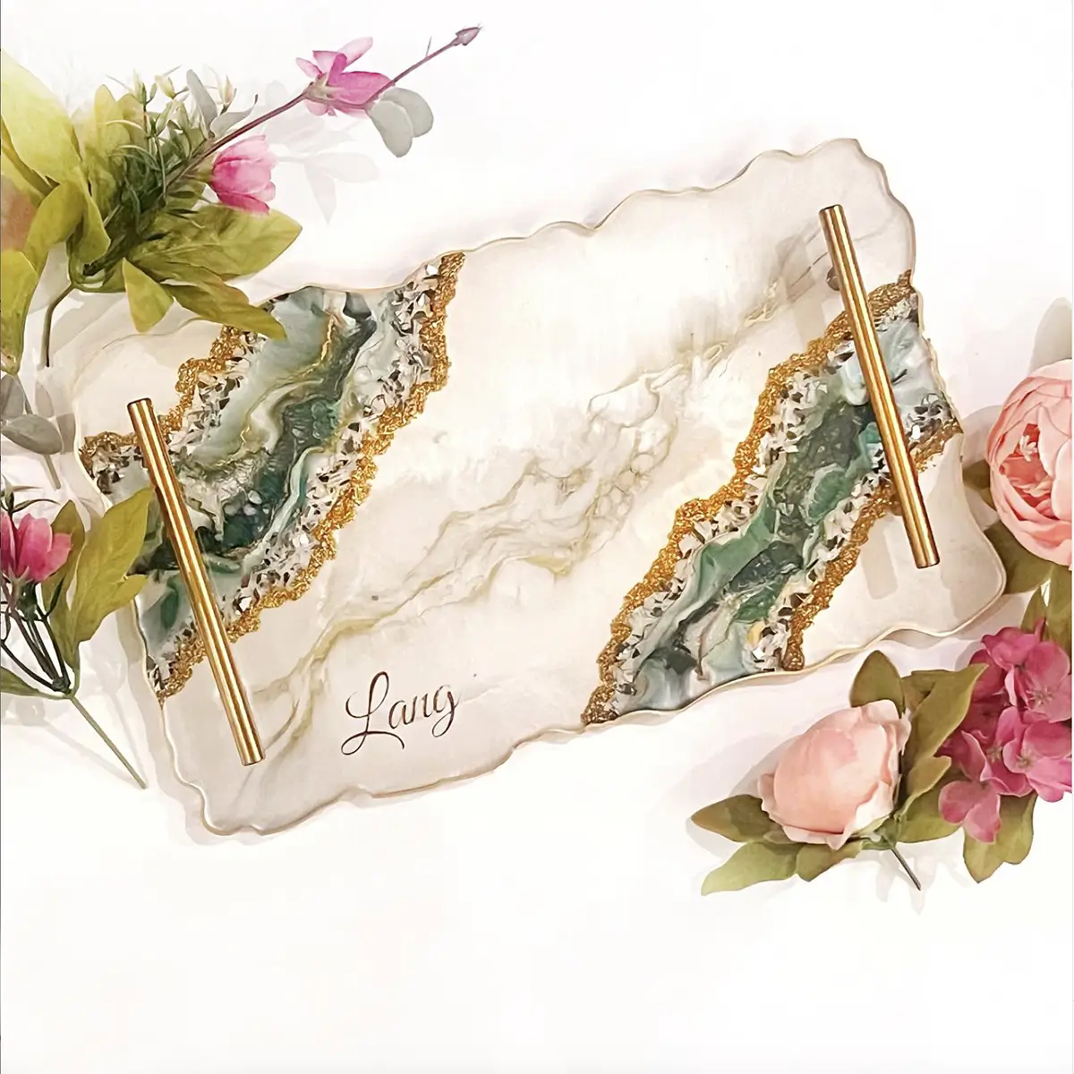 Please note that all resin patterns are handmade, and as such, may not appear exactly as pictured. Each tray will feature a one-of-a-kind resin pattern, ensuring that your tray is unique and distinct