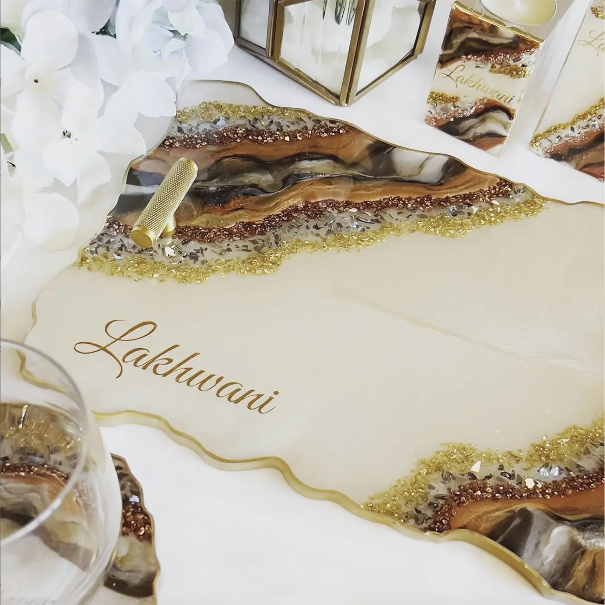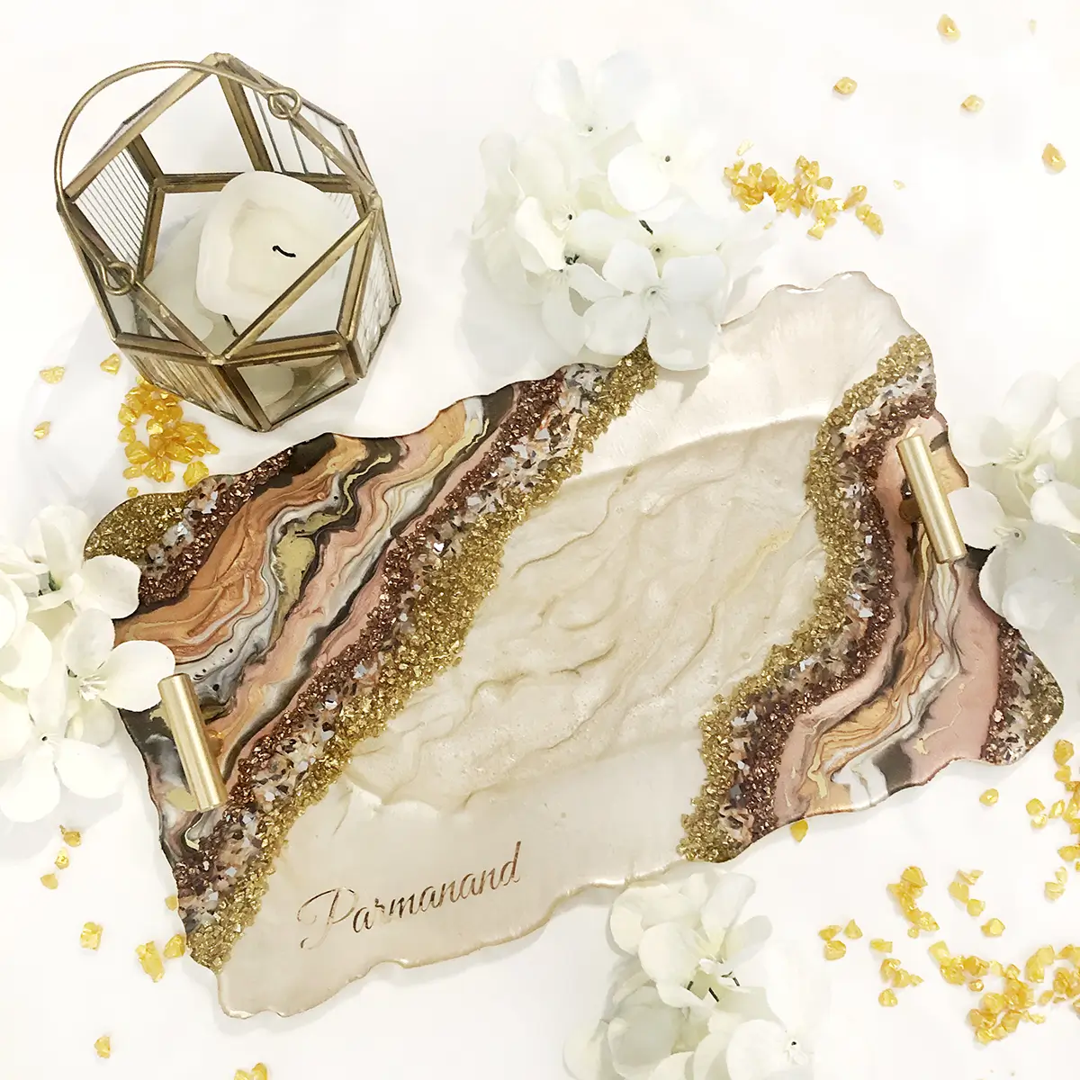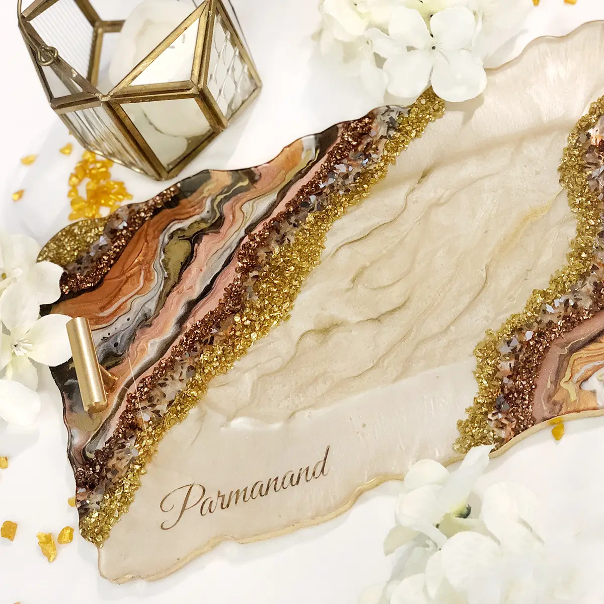 Introducing our handmade Embellished Resin Tray, a versatile piece that doubles as a stunning serving platter or an elegant cheese board. Crafted with care, this tray is designed to impress your guests while providing practicality for any occasion.