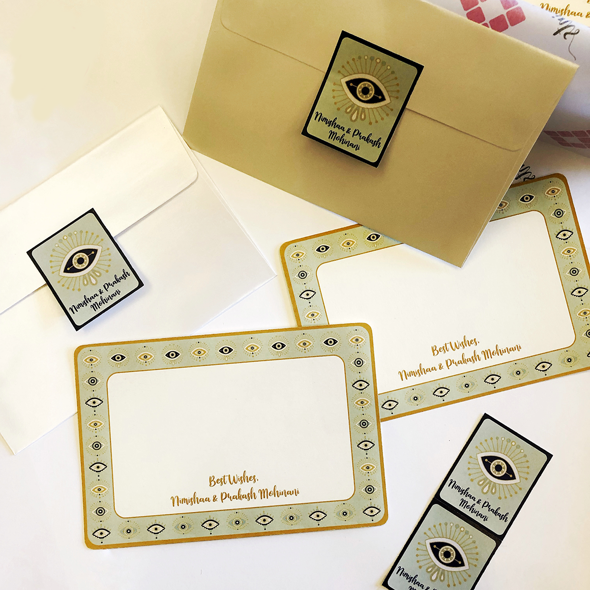 - Personalized Stickers: Each envelope is sealed with a custom sticker featuring your design, adding an elegant finishing touch.