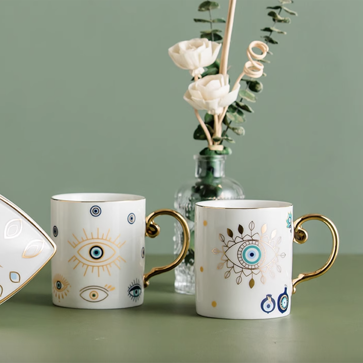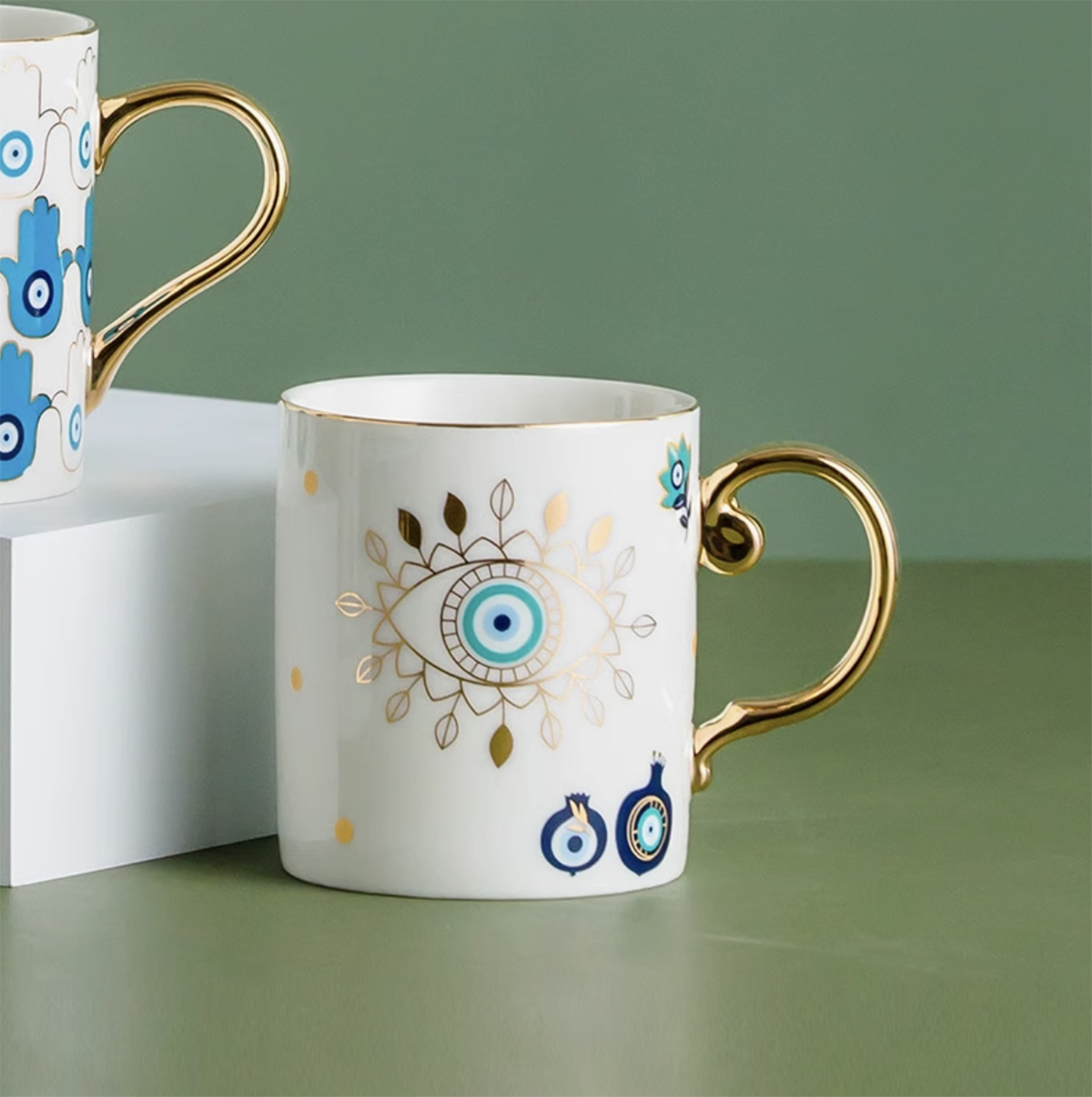 With its delicate floral motifs and protective eye symbols, this mug embodies harmony and serenity. The exquisite craftsmanship and thoughtful design make it a perfect gift for yourself or a loved one.