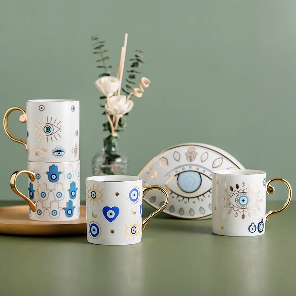 - Mix and Match: Create your own personalized collection by mixing and matching these mugs with other evil eye designs from our collection. This allows for a unique and cohesive display that reflects your personal style.